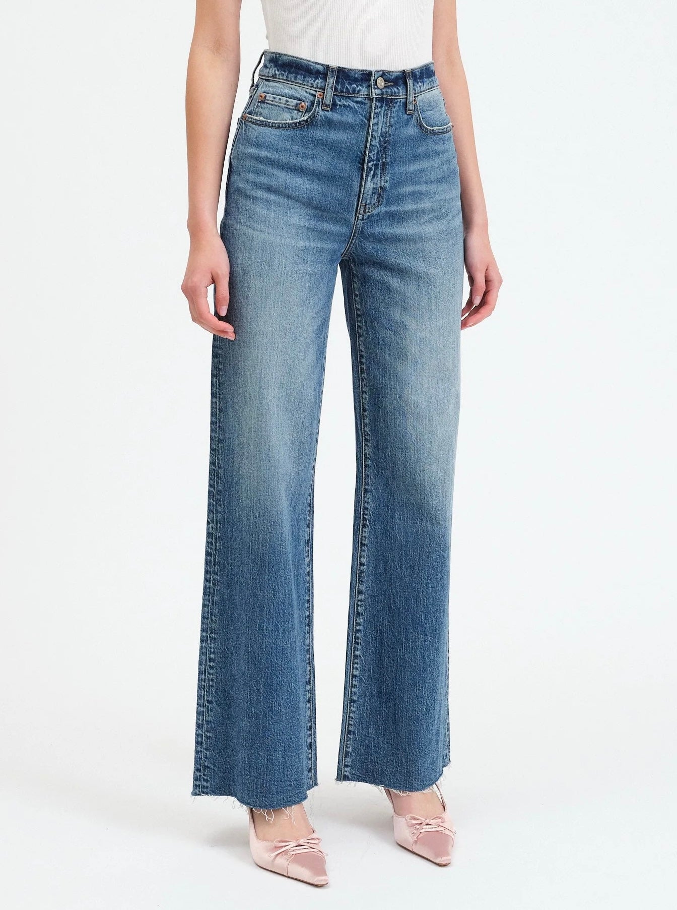 The cool girl jean, Far Out is a baggy and modern silhouette with vintage character. In a waist defining high rise and a detailed medium wash, this relaxed fit is constructed in Daze's "Tough Love" denim, that gives the vintage feeling of rigid structure, with just a touch of stretch.