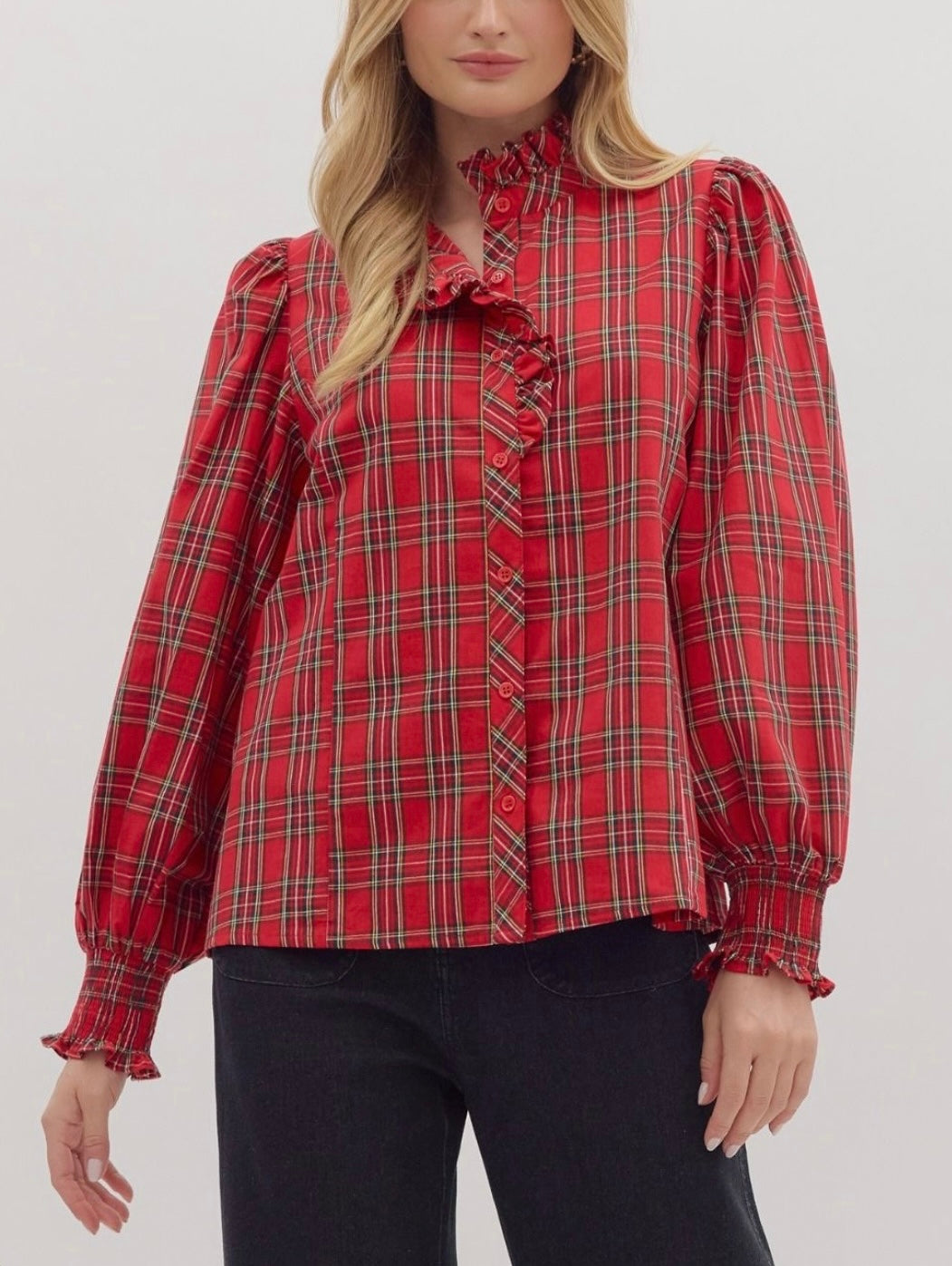 - Christmas plaid long sleeve top