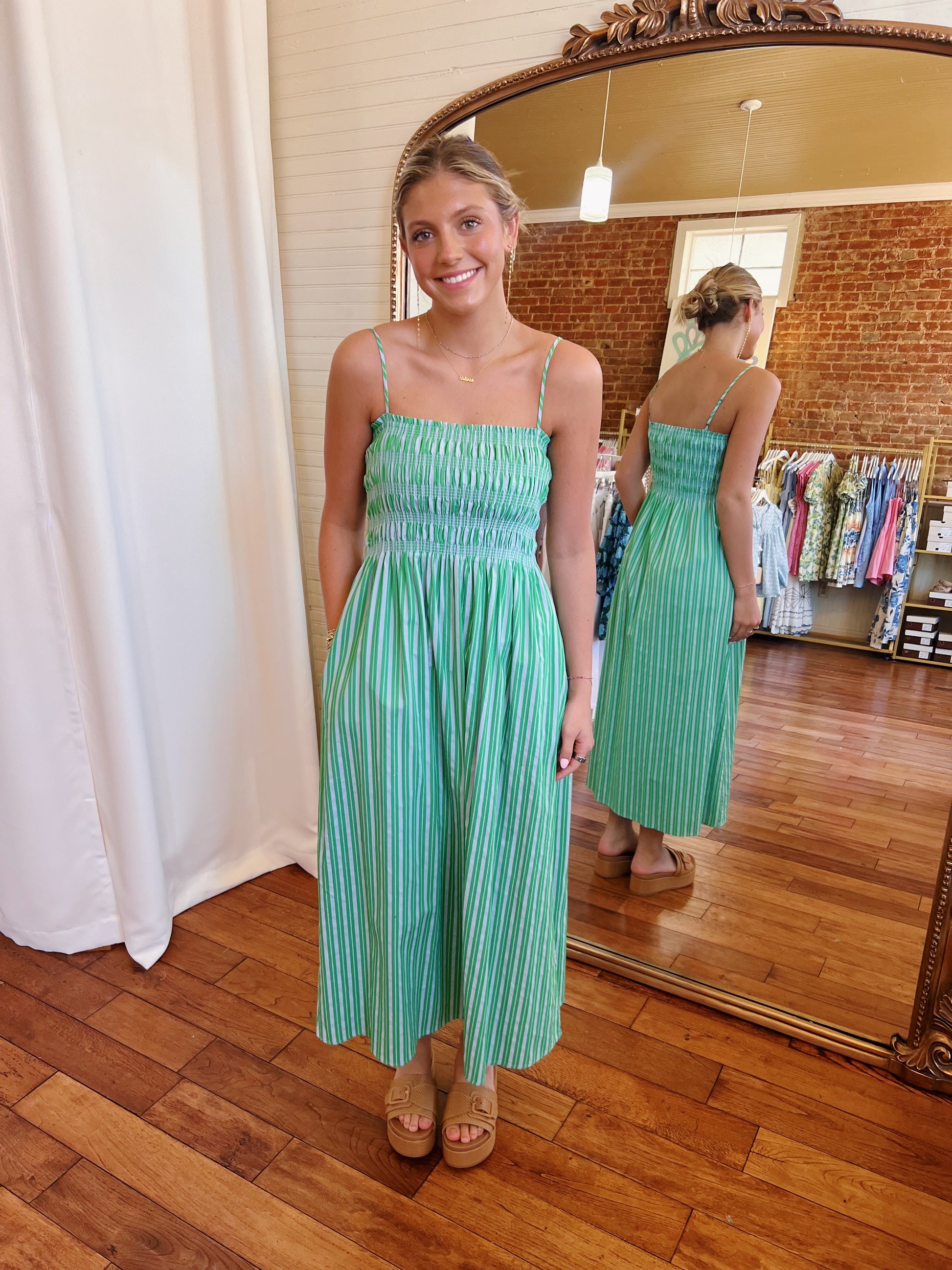 PISTOLA BIANCA DRESS- GREEN/BLUE STRIPE